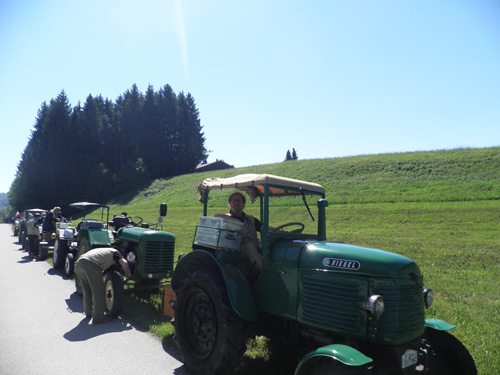 | Die erste Ausfahrt war im Mai und ging bei strahlendem Sonnenschein zum Wahlfahrtsort Maria Eck . Gestartet wurde in Oberndorf an der Grenze, weiter nach Oberteisendorf durchs Achtal richtung Siegsdorf und dann den Berg hinauf zur Wallfahrtskirche . Gegessen wurde vorzüglich im Klostergasthof . Danach ging es wieder zurück über Rückstetten wo wir dann noch einkehrten in Lemperholzen in einem urigen "Anno dazumal Gasthaus " . Unsere Musikanten der Kurier und der Sepp spielten noch auf und dann gin es ab nach Hause |