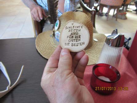 13.15 Uhr trafen sie ein .Das Gesicht bedeckt mit Schweißperlen fast ausgetrocknet trafen sie ein. Keine langen Reden rein ins Restaurant. Nachdem der erste Durst gelöscht war wurde mir dann eine Plakette überreicht gestylt natürlich vom Adi (Renzl) |