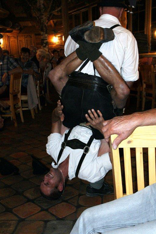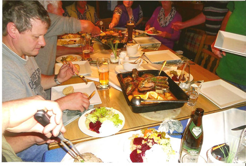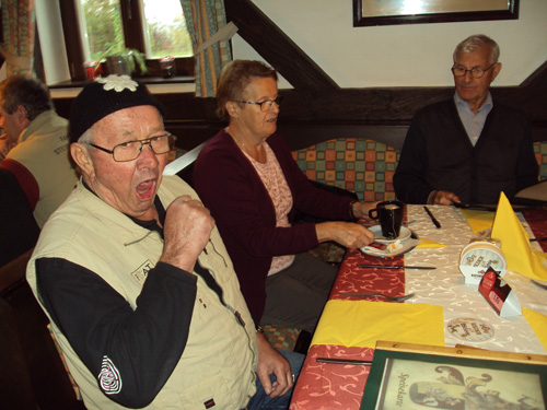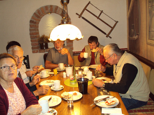 . Dann kam der Samstag und los ging das Unternehmen . Wir führen die Strecke genau so wie wir sie mit dem Traktor fahren würden . Busfahrer war unser Richard Andorfer . Erste Einkehr zum Mittagessen |